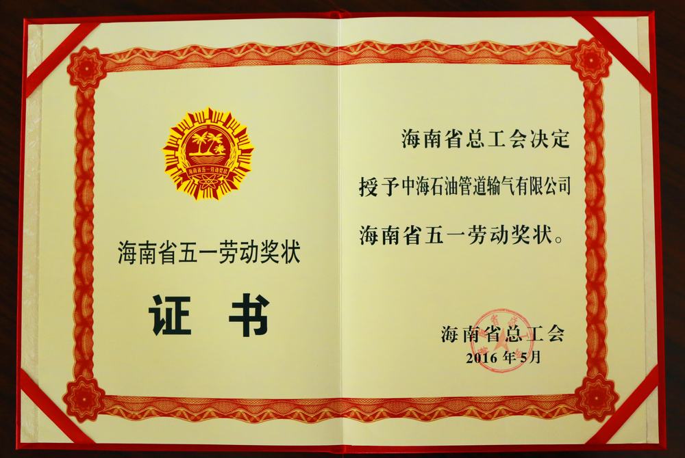 海南管道获海南省五一劳动奖状22,汤信传总经理荣获全国五一劳动奖章