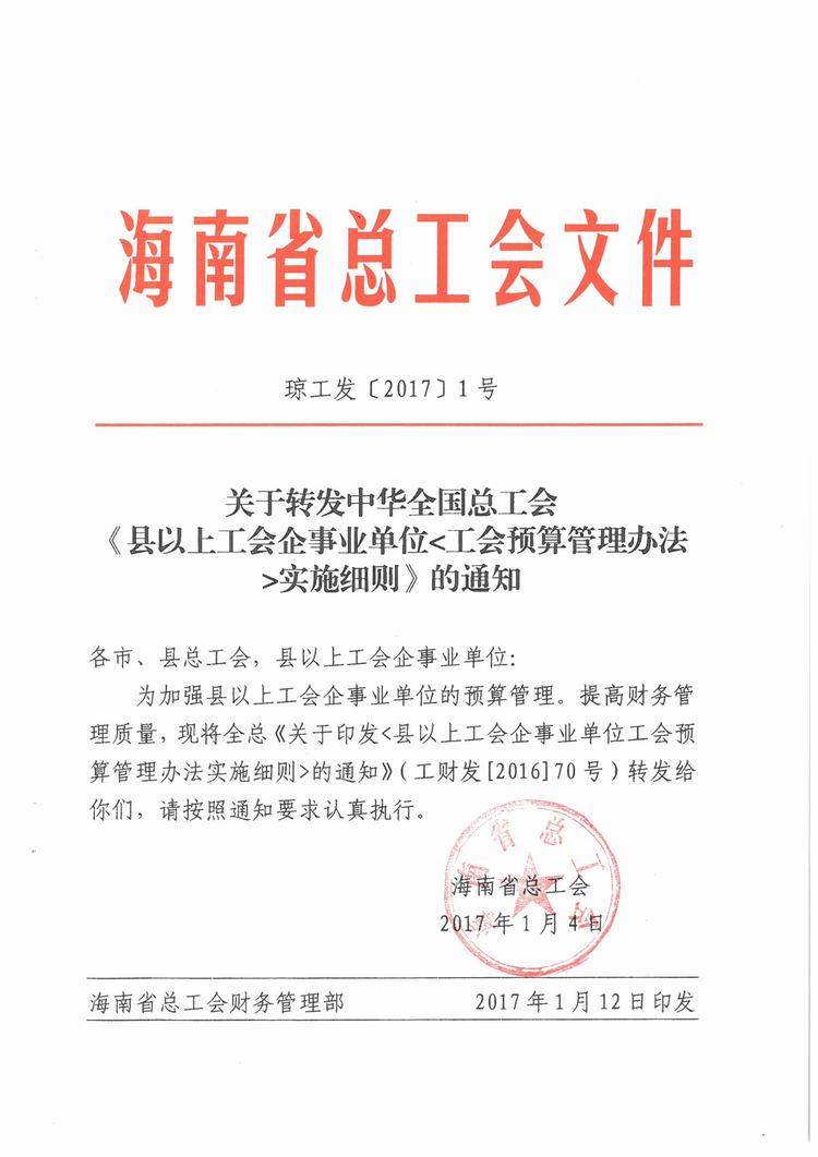 省总转发,全总关于印发县以上工会企事业单位工会预算管理办法实施细则的通知